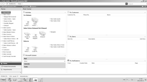 Fig.1.: The “Shipping and Receiving” Role Center of Dynamics NAV