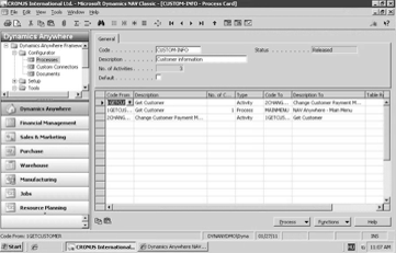 Figure 2. shows the list of the activities of this process (which I named to “Customer Information”) as it appears on the user interface of the Dynamics Anywhere Development Framework.