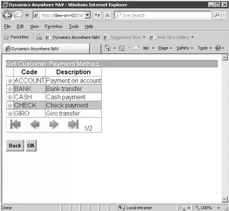 On the figure 6. we can also see the browser based user interface of the mobile device. Here using the controls of the “Get Customer Payment Method” activity we can choose the “Bank transfer” value to replace the former value of “Cash” of the Payment Method Code field of the Customer card in the central database of Microsoft Dynamics NAV.